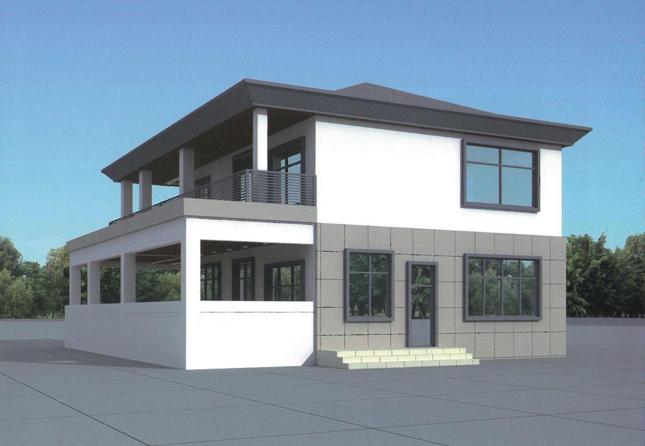 一层:客厅、棋牌室、休闲茶房、厨房、卧室、卫生间 二层:卧室*3、卫生间*1、露台
