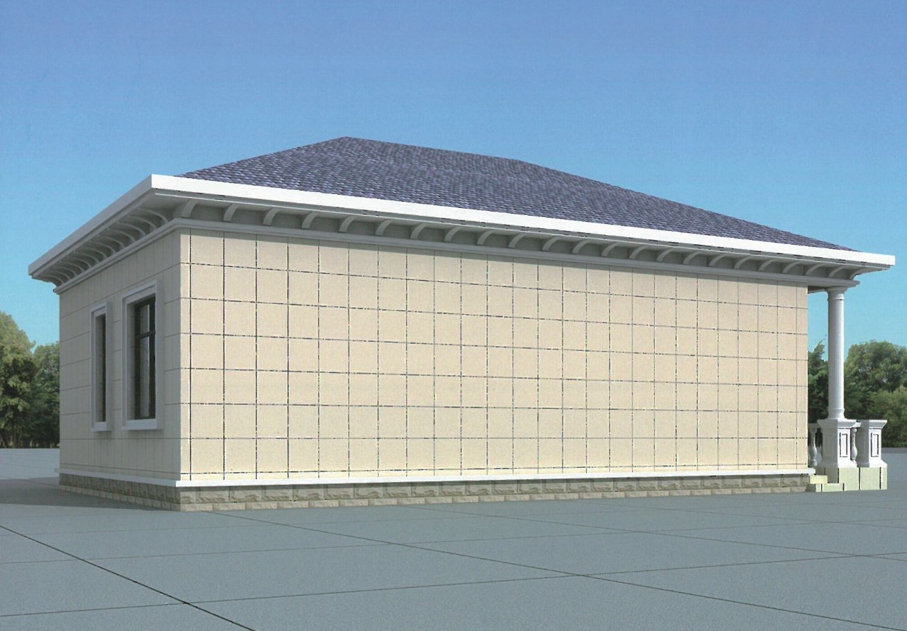 整体为轻钢结构,屋面沥青瓦+卷材防水(材料可选),木塑 挂板复合保温外墙(材料可选)实木内墙(材料可选),铝合 金门窗(材料可选)。