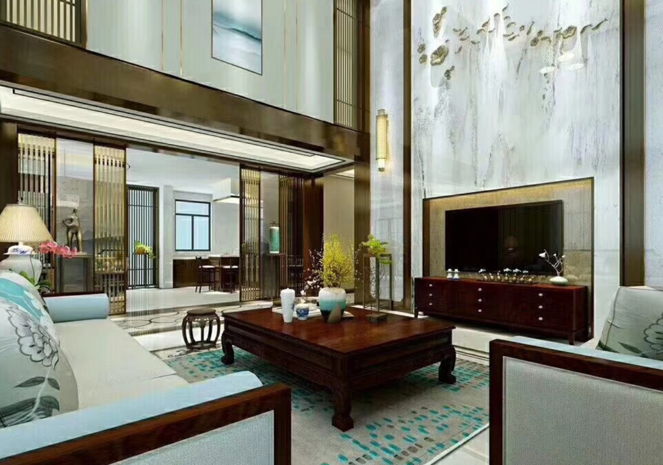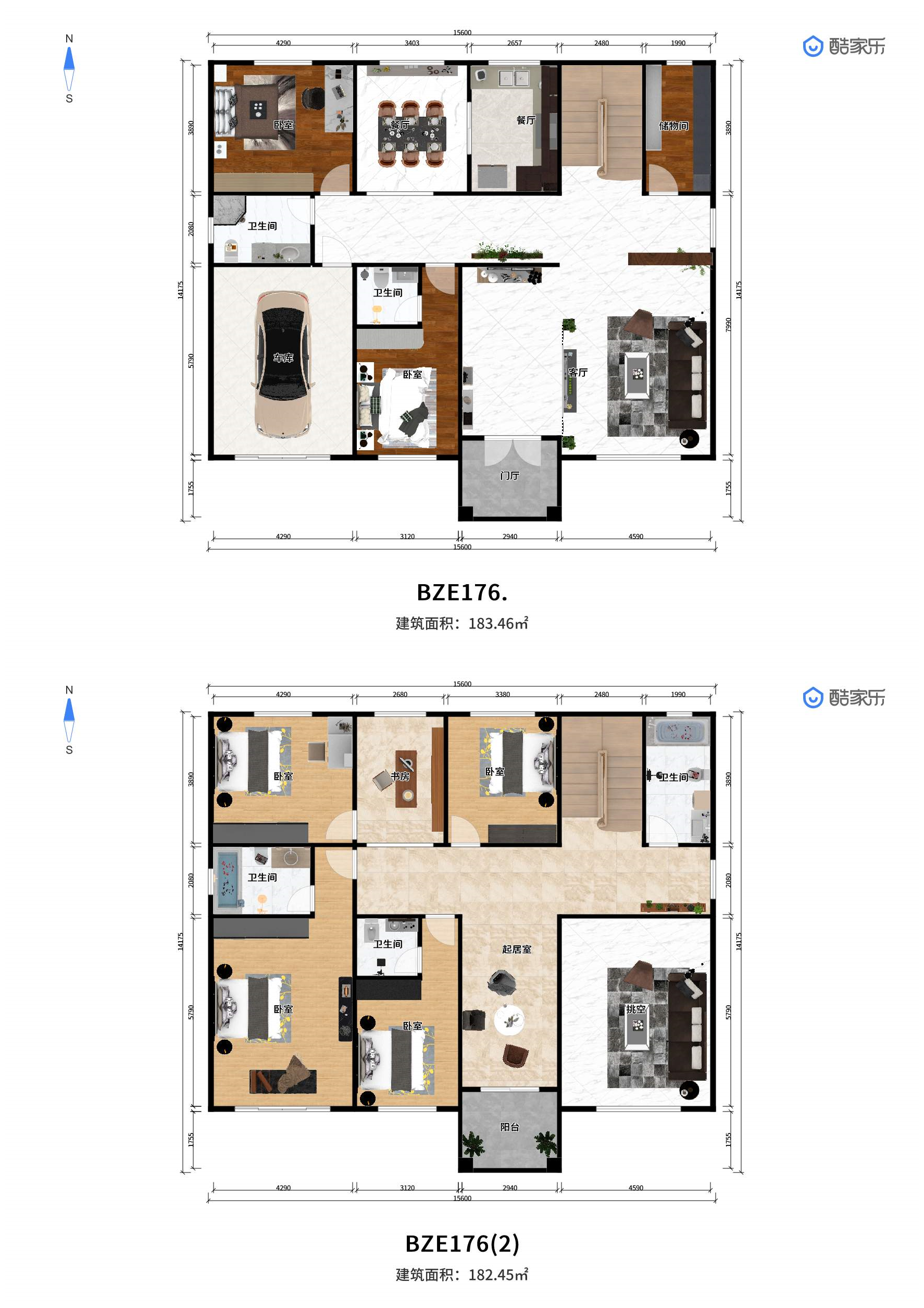 一层:客厅、餐厅、厨房、卧室x2、卫生间x1 二层:会客厅、茶室、卧室*4、卫生间*2