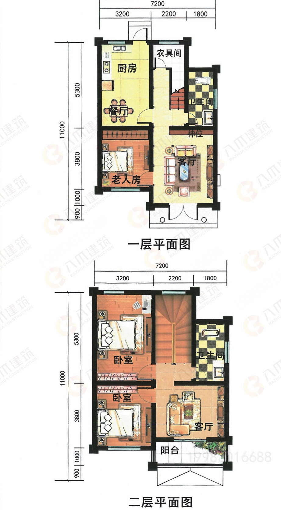 一层:客厅、餐厅、棋牌室、厨房、卧室、卫生间、储藏间、车库 二层:小客厅、卧室*4、卫生间*2、书房、露台