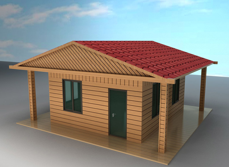 整体为轻钢结构,屋面沥青瓦+卷材防水(材料可选),木塑 挂板复合保温外墙(材料可选)实木内墙(材料可选),铝合 金门窗(材料可选)。