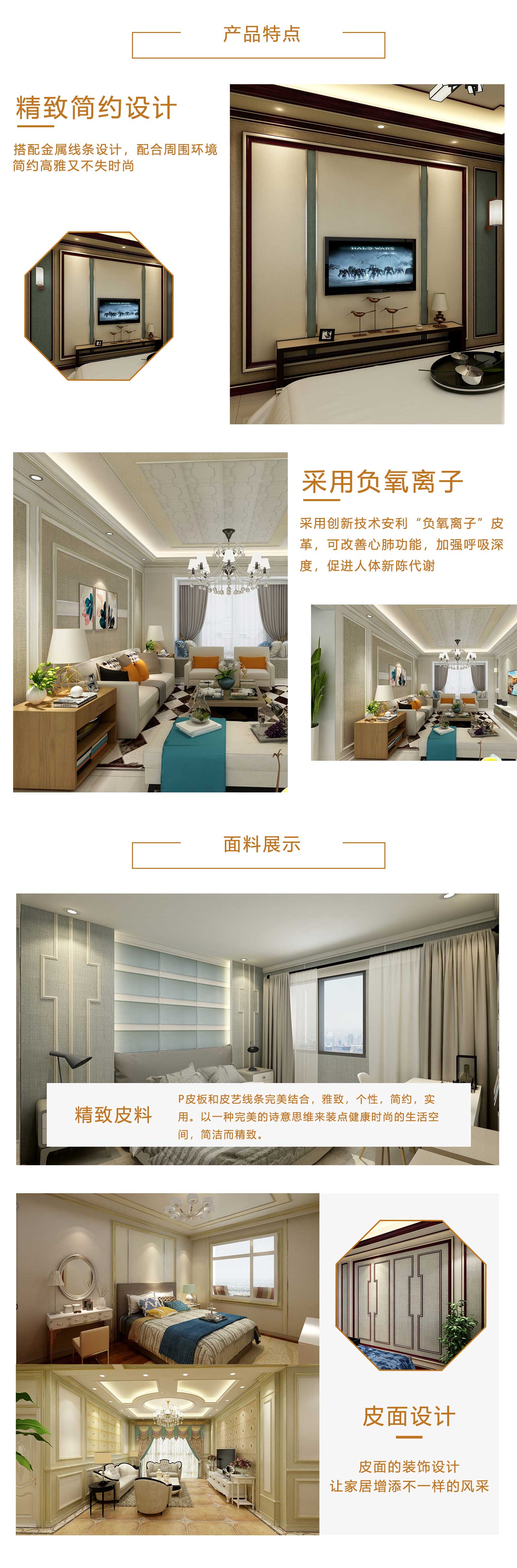 配置:4根8cm网格皮艺线条+5根4cm网格皮艺线条+皮板/布板4张+13mm几字形金属线条4根(所有产品颜色可以任意选择)