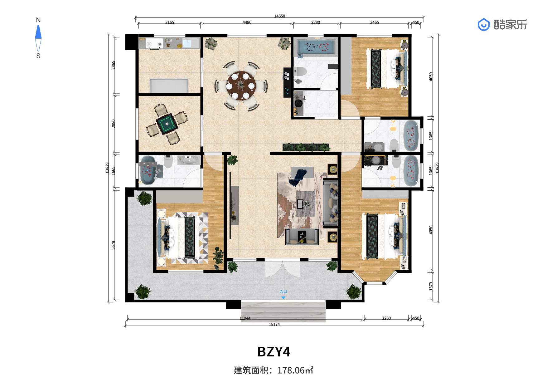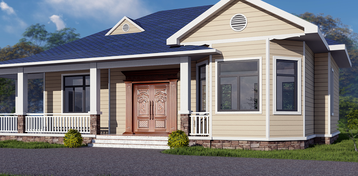 整体为轻钢结构,屋面沥青瓦+卷材防水(材料可选),木塑挂板复合保温外墙(材料可选)实木内墙(材料可选),铝合金门窗(材料可选)。