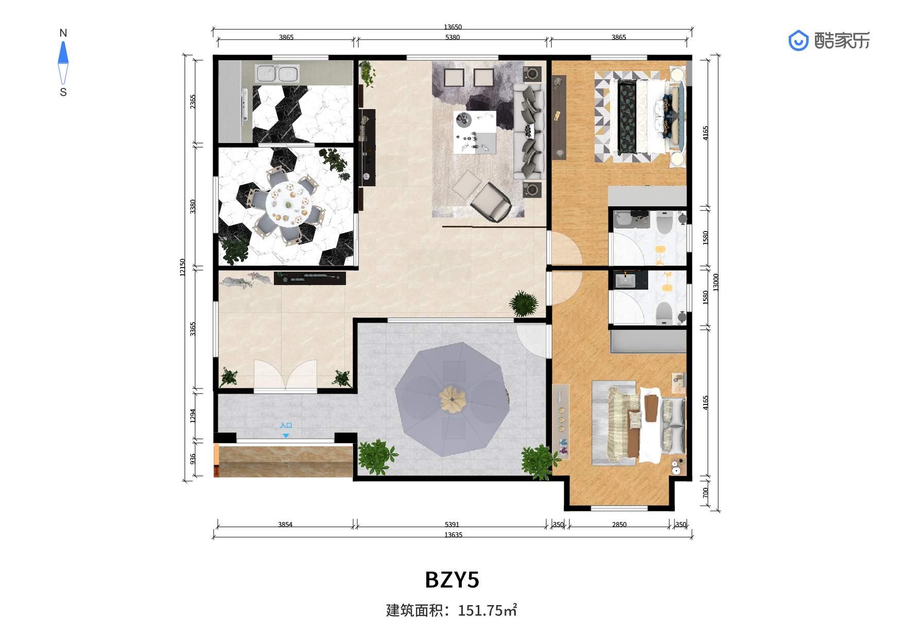 整体为轻钢结构,屋面沥青瓦+卷材防水(材料可选),木塑 挂板复合保温外墙(材料可选)实木内墙(材料可选),铝合 金门窗(材料可选)。