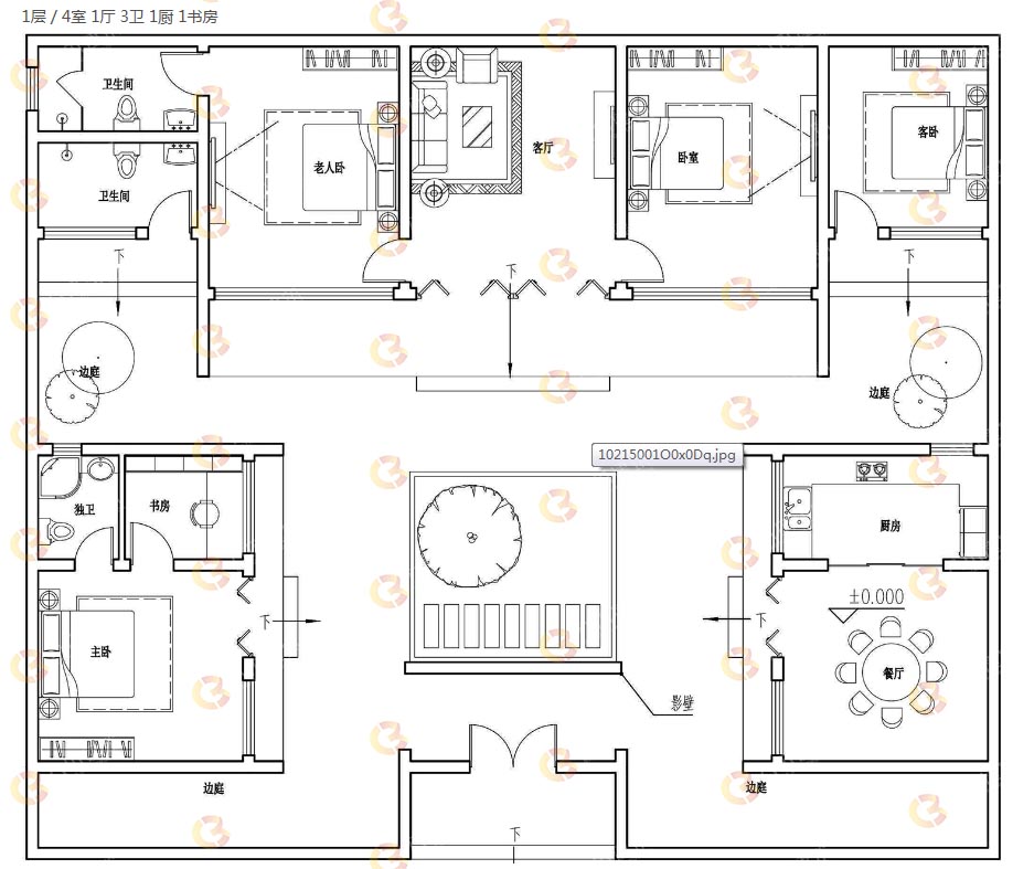 本户型为一层四合院轻钢别墅中式轻钢别墅,风味独特,别具一格