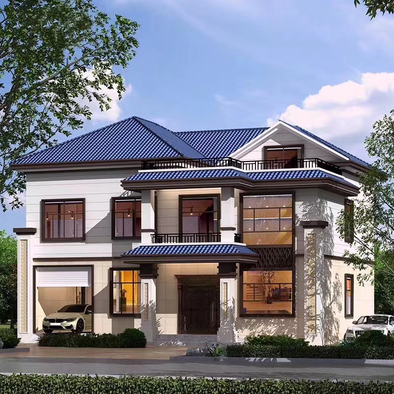 整体为轻钢结构,屋面沥青瓦+卷材防水(材料可选),木塑 挂板复合保温外墙(材料可选)实木内墙(材料可选),铝合 金门窗(材料可选)。