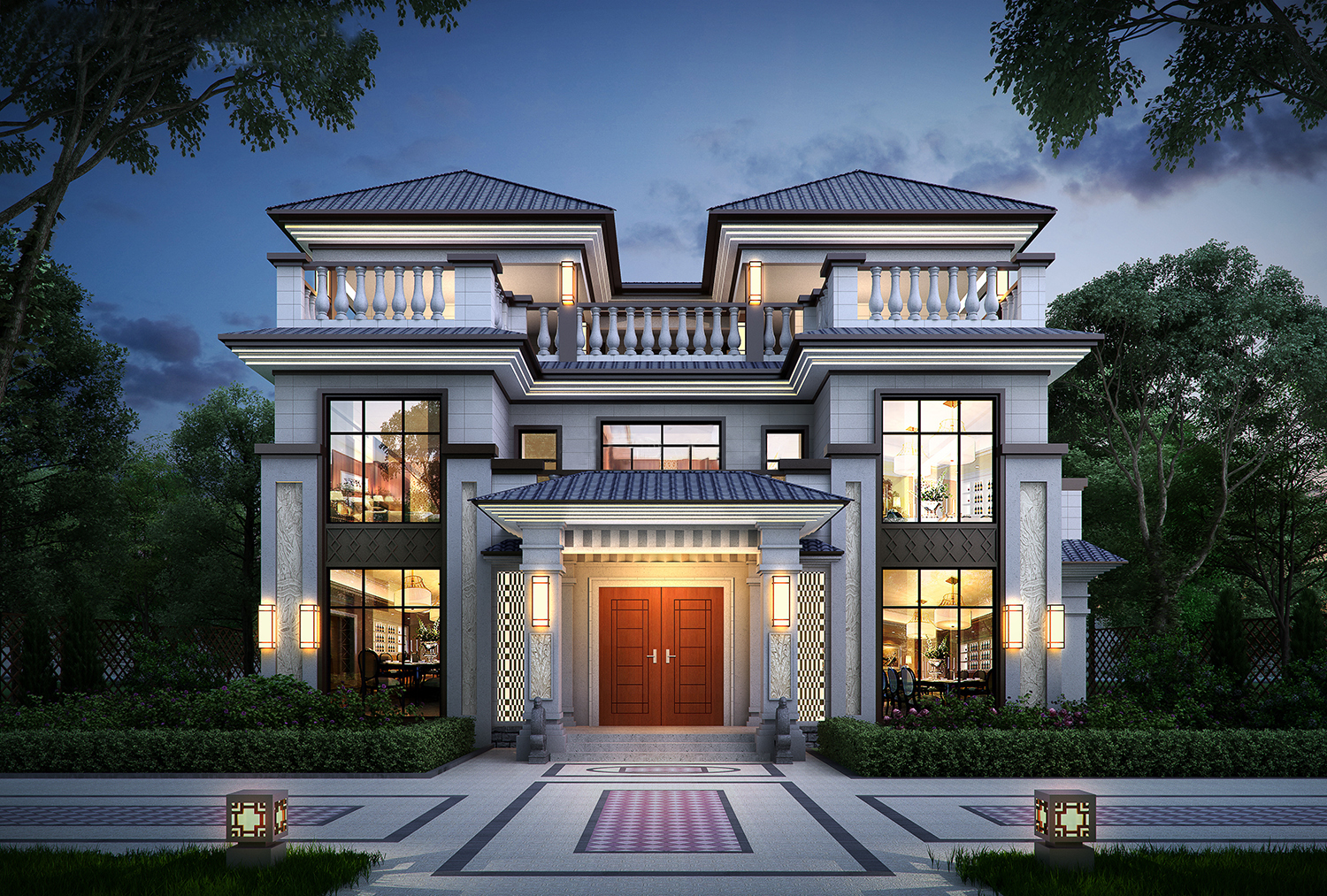 本户型为三层轻钢别墅中式轻钢别墅,风味独特,别具一格